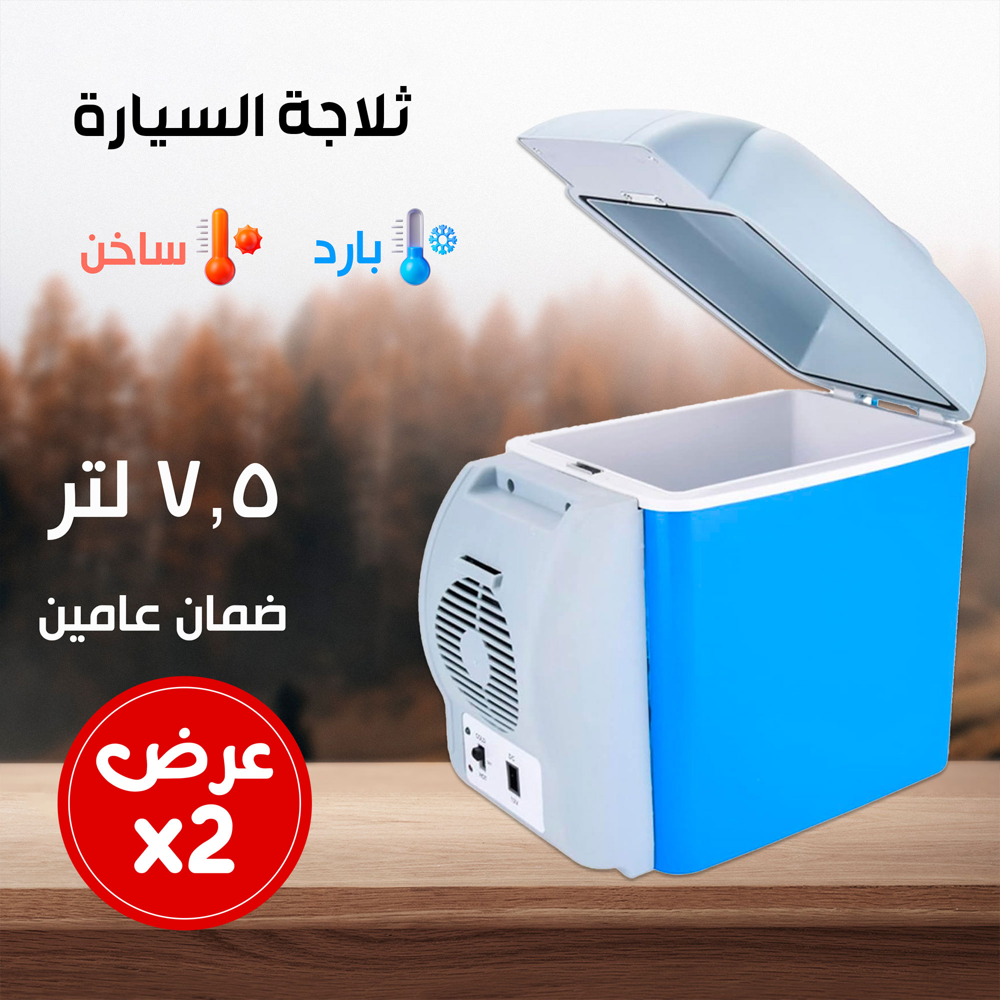 عرض 2 ثلاجة سيارة 7.5 لتر تعمل على 12 فولت، تبريد وتسخين، مثالية للرحلات والسيارة، تصميم عملي وهادئ، مع ضمان عامين.